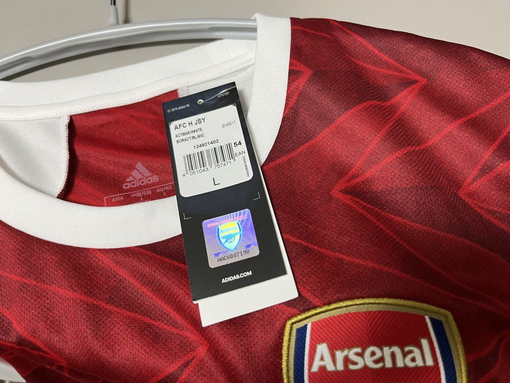 そして、購入したユニフォームにはアーセナルのクラブホログラムがアディダスタグについていました!